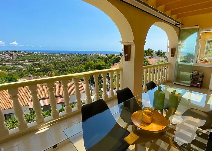 La Villa Colina Del Sol Calpe, situada a una distancia de 4 km del Centro de interpretación Parque Natural del Penyal d'Ifac, ofrece una terraza con vistas a las montañas.